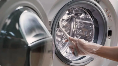 Pour 50ml of tub cleaner detergent into the drum and start the tub clean function to sanitize the inside of the washer tub.